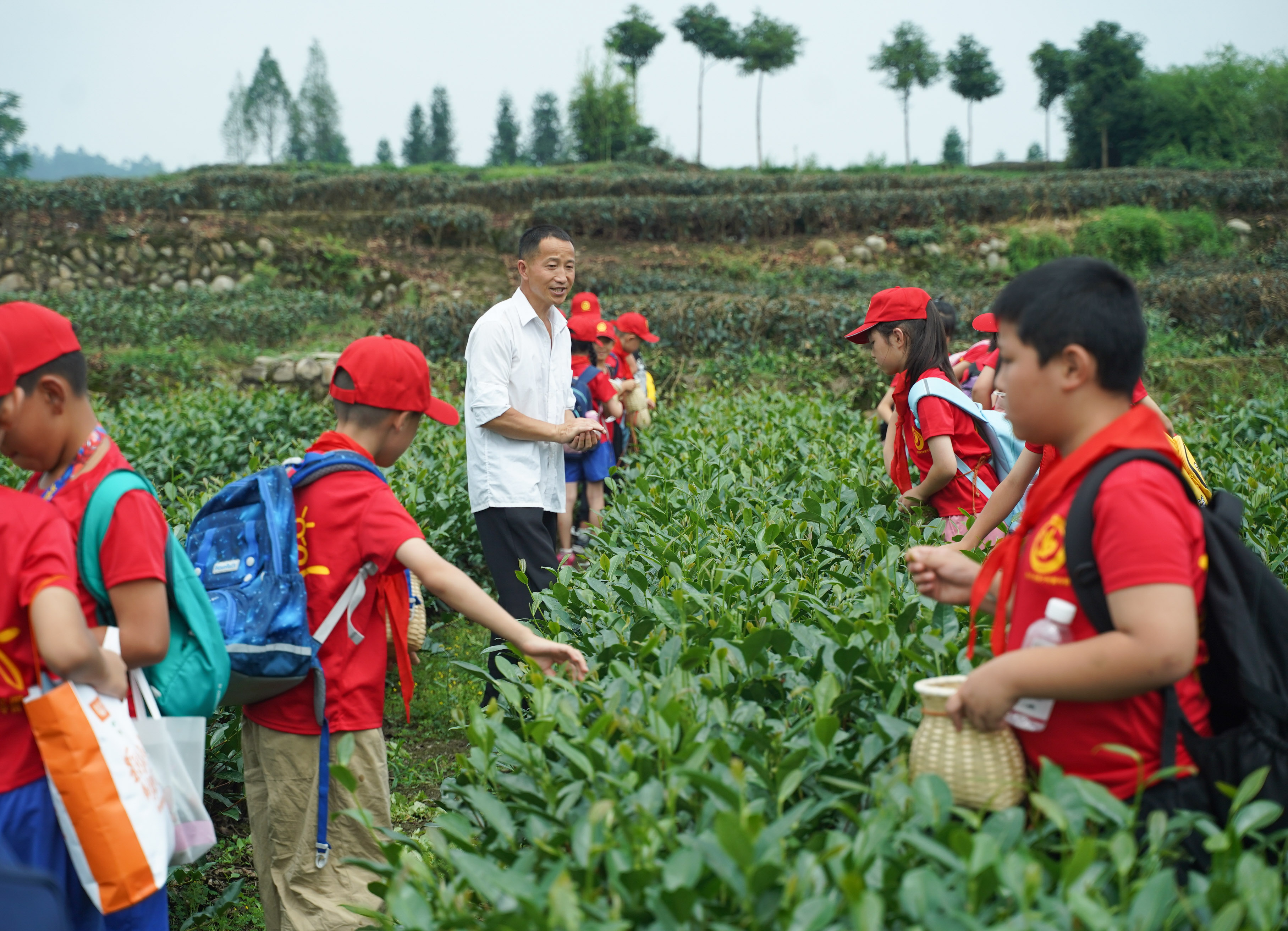 在暑期校外輔導(dǎo)活動中,孩子們走進(jìn)茶園體驗采茶。