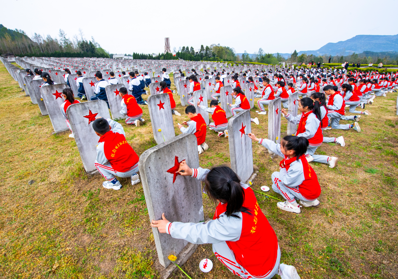 巴中市關(guān)工委組織學(xué)生開展清明祭英烈活動