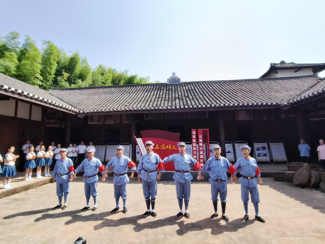 6月中旬,藝術(shù)團(tuán)“五老”在紅色教育基地與青少年一同開(kāi)展紅歌快閃活動(dòng)。