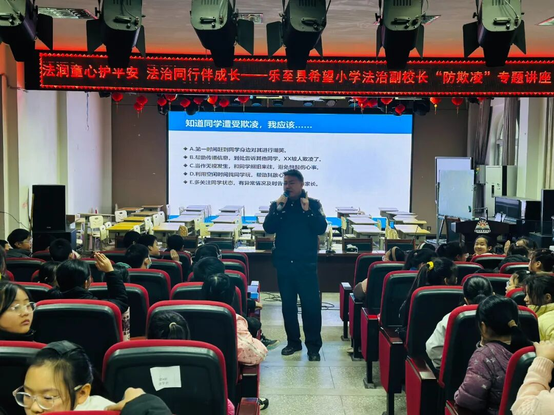 為深入貫徹落實(shí)法治安全教育進(jìn)校園的工作要求,切實(shí)增強(qiáng)學(xué)生法治觀念與安全防護(hù)意識(shí),從源頭上預(yù)防和遏制校園欺凌事件發(fā)生,全力營造安全和諧友善的校園生態(tài)。2025年12月25日,資陽市樂至縣希望小學(xué)關(guān)工委特邀法治副校長(zhǎng)、南塔派出所李靜波警官,為五年級(jí)學(xué)生帶來了一場(chǎng)兼具專業(yè)性與實(shí)用性的 “防欺凌” 專題講座,為孩子們的健康成長(zhǎng)筑牢法治安全屏障。