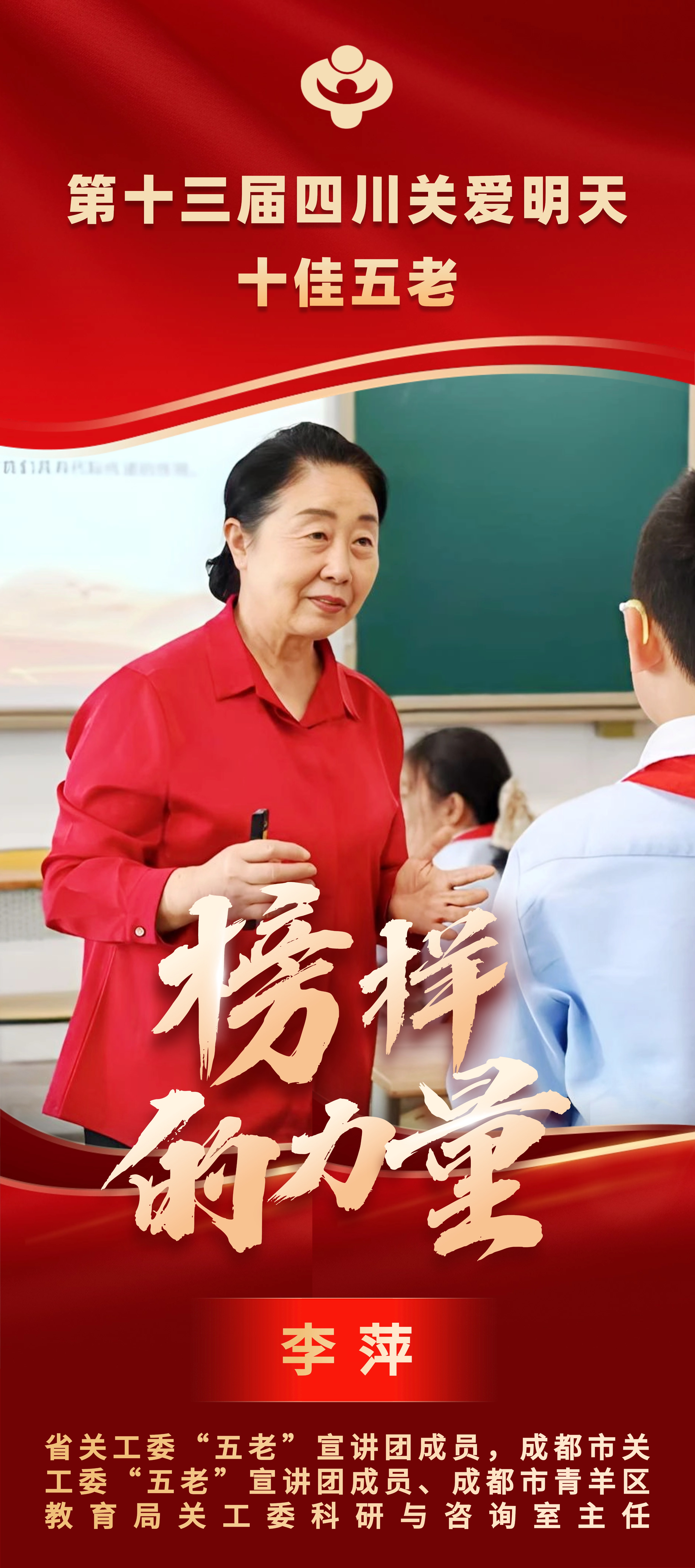 以初心聚五老之力,以紅心照成長之路,以愛心燃希望之光。深耕關工委工作17年,推動6個后進基層組織建成“五好”關工委,構建完善工作體系。組建百名“五老”宣講團,開展黨史、法治等主題宣講超1萬場次,惠及青少年超100萬人次,“百名五老講黨史”登上央視新聞。創(chuàng)新“五無”校園創(chuàng)建等特色項目,深入調(diào)研獻策,始終奔走在關愛一線。